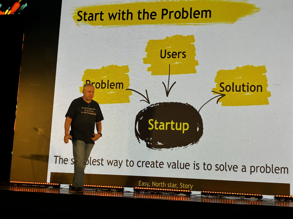 Su mensaje central fue que antes de desarrollar tecnología,el emprendedor debe conversar con los usuarios potenciales,entender cómo perciben el problema y comprobar si vale la pena resolverlo. Si se parte de la solución,advirtió,existe el riesgo de crear algo que nadie necesita.